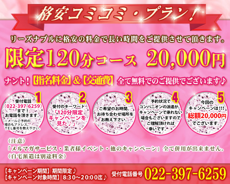 ナント!【指名料金】&【交通費】全て無料でのご提供でございます♪