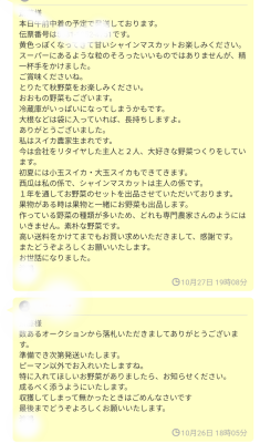 暖かい(*´▽`)ノノ 2025/10/28 05:59:49 おはようございます(*^^*) かすみです。 いつも野菜を購入してます。 購入する度にホッコリする(*^^*) そんなやり取りできて、少しホッコリ(◍︎´꒳`◍︎)するのです。 購入して良かったと思えるから。 人妻セレブリティかすみ ヤフオクより♪