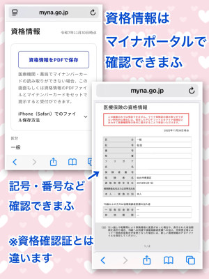 ✔︎マイナポータルで資格情報を確認できれば再発行は不要