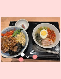 カルビビビンバ丼とミニ冷麺のセットを注文しました。